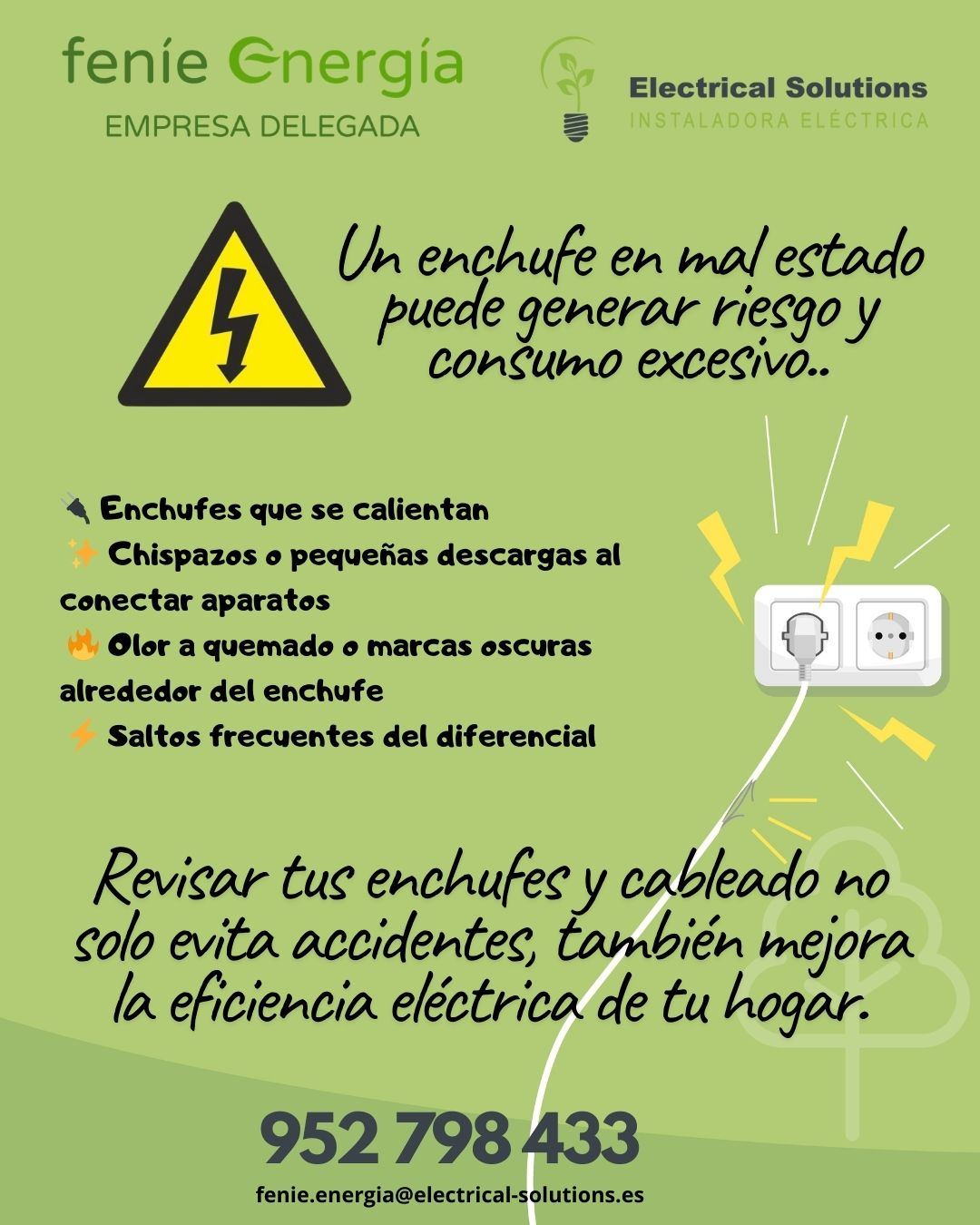 En ELECTRICAL SOLUTIONS, como Asesor Energético de Feníe Energía, te ayudamos a mantener tu instalación eléctrica segura y optimizada, identificando puntos de riesgo y oportunidades de mejora para un consumo más eficiente.